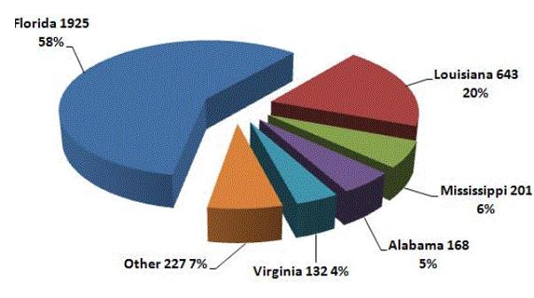 have been in Alabama, Louisiana, Mississippi, Virginia, Wisconsin,